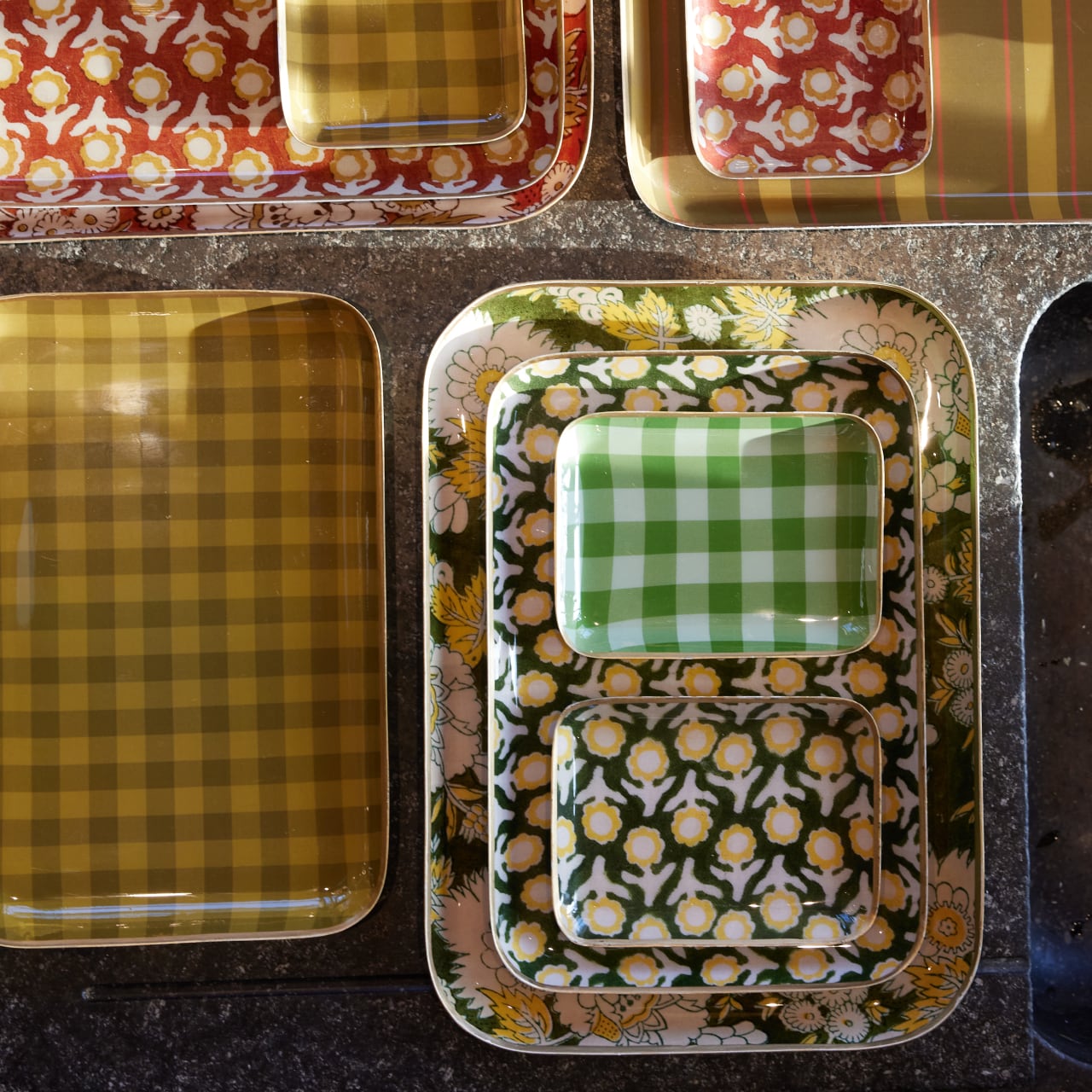 Bonheur du Jour ブロックプリント柄のディスプレイトレー / Isha Green