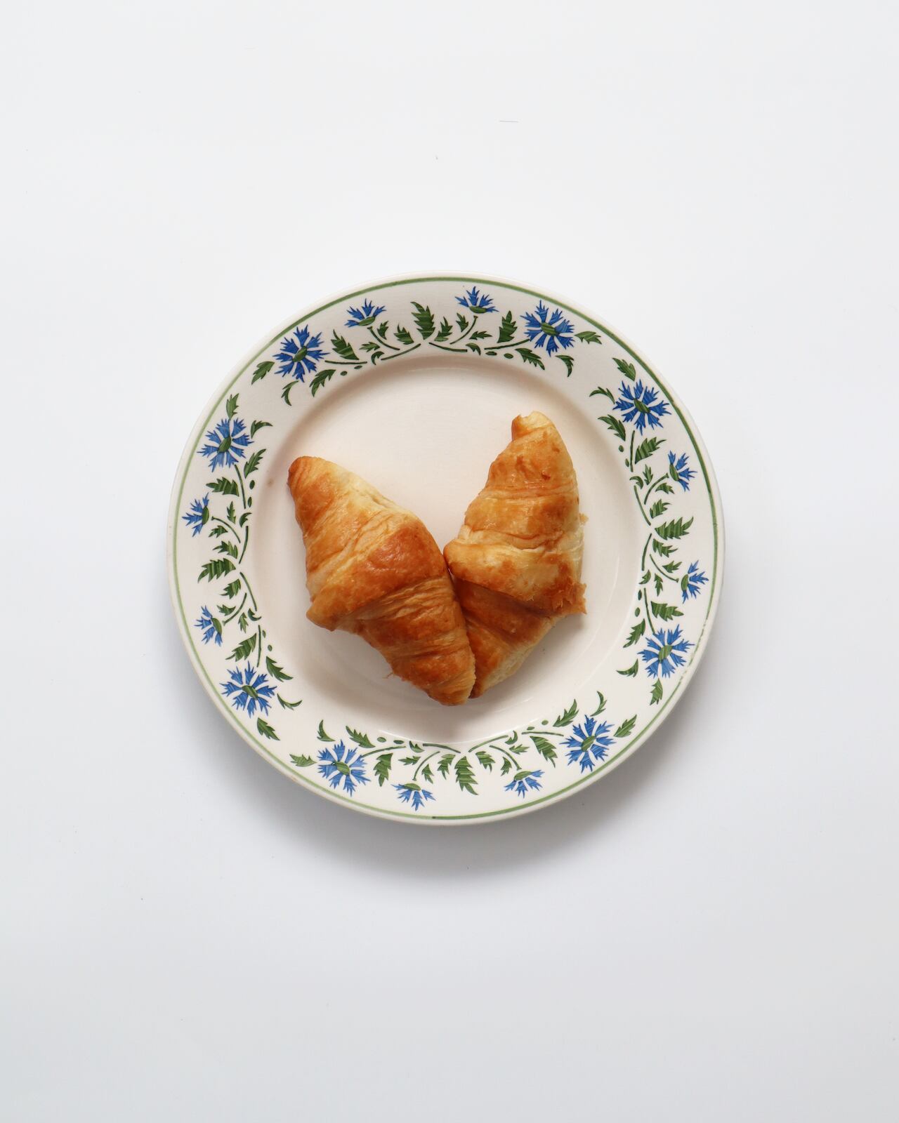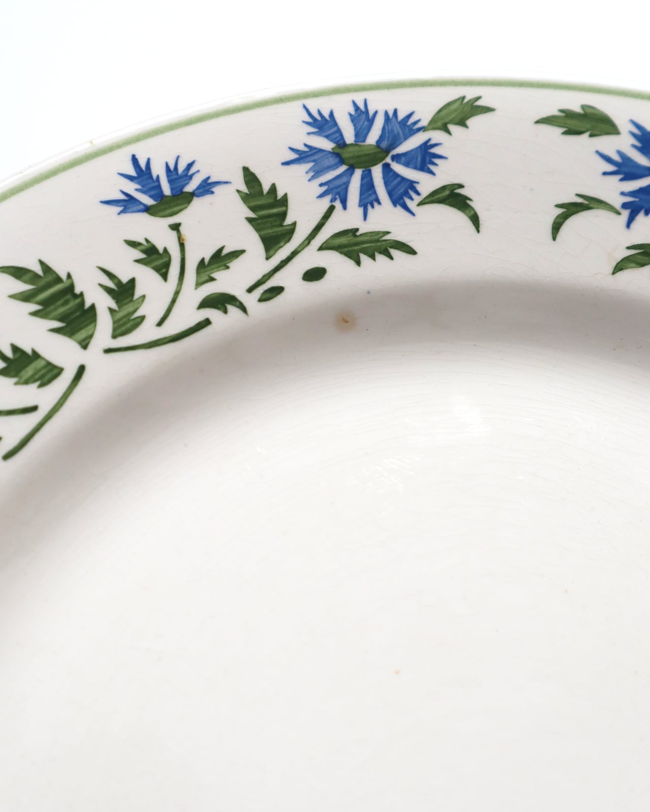 縁をぐるりと囲むのは、グリーンの葉と青い花。
