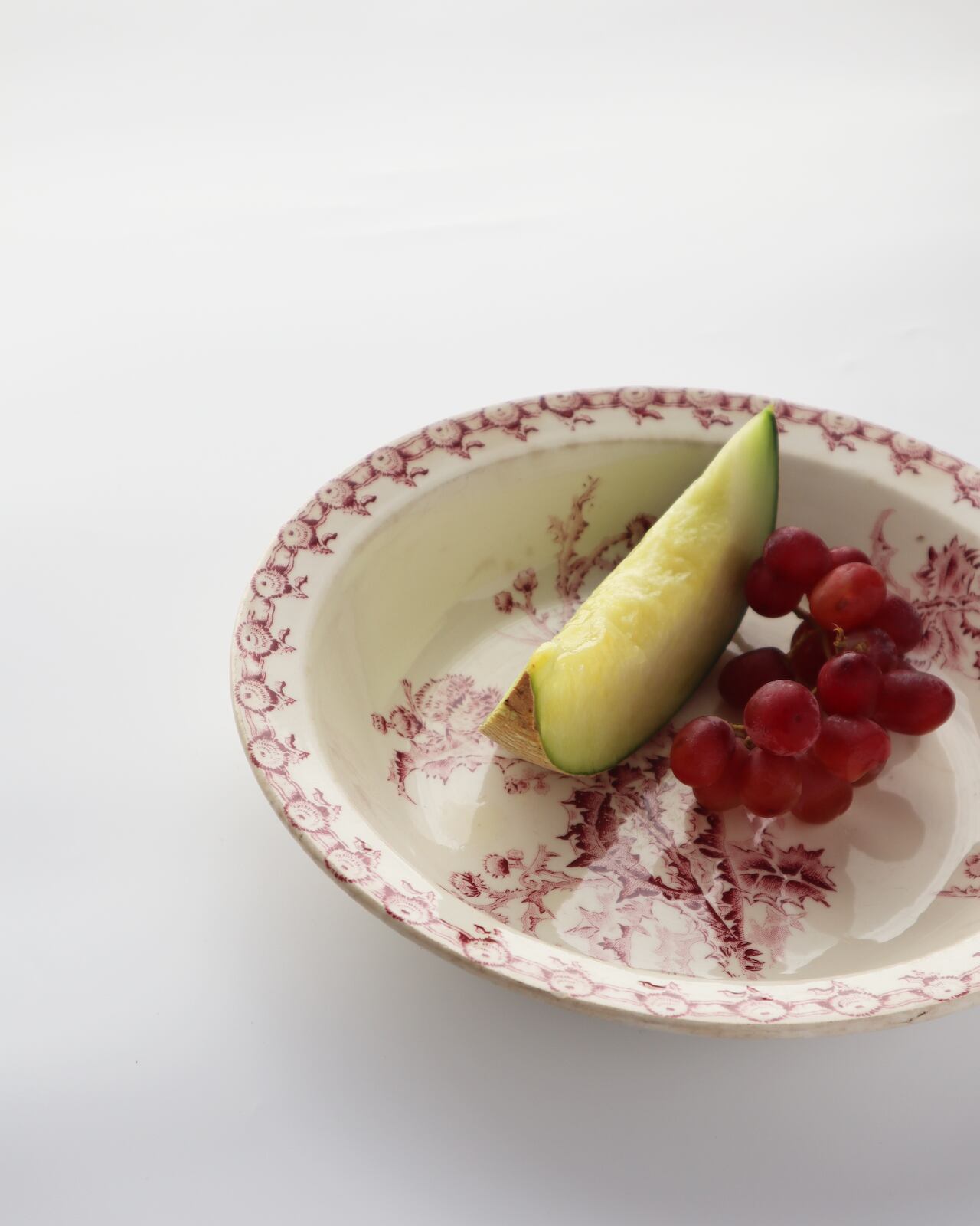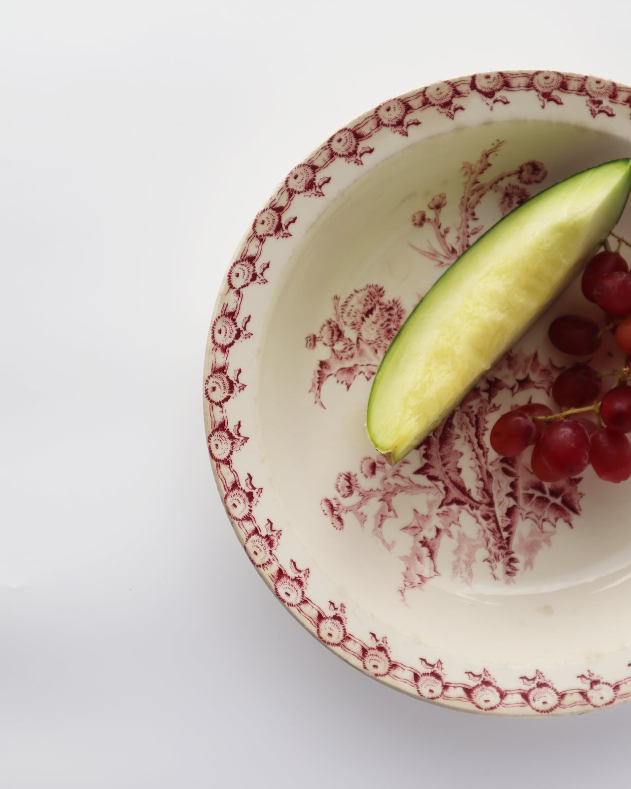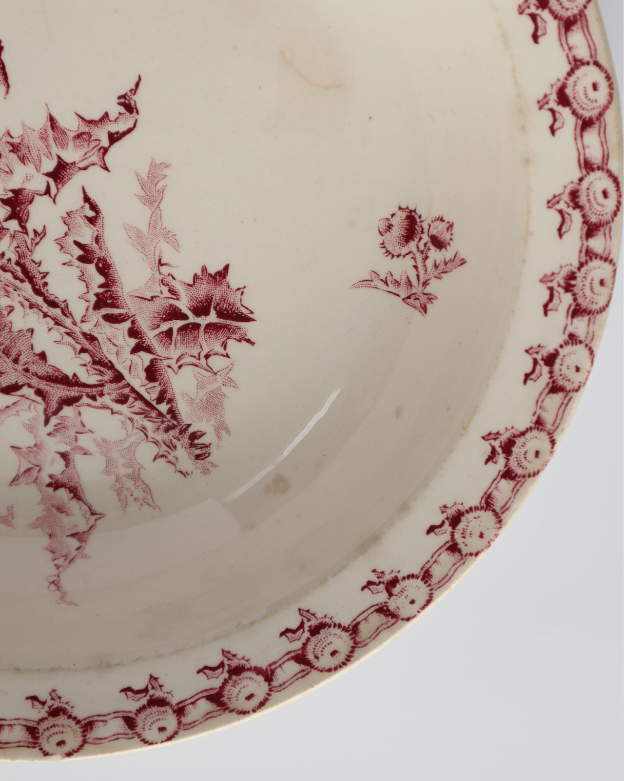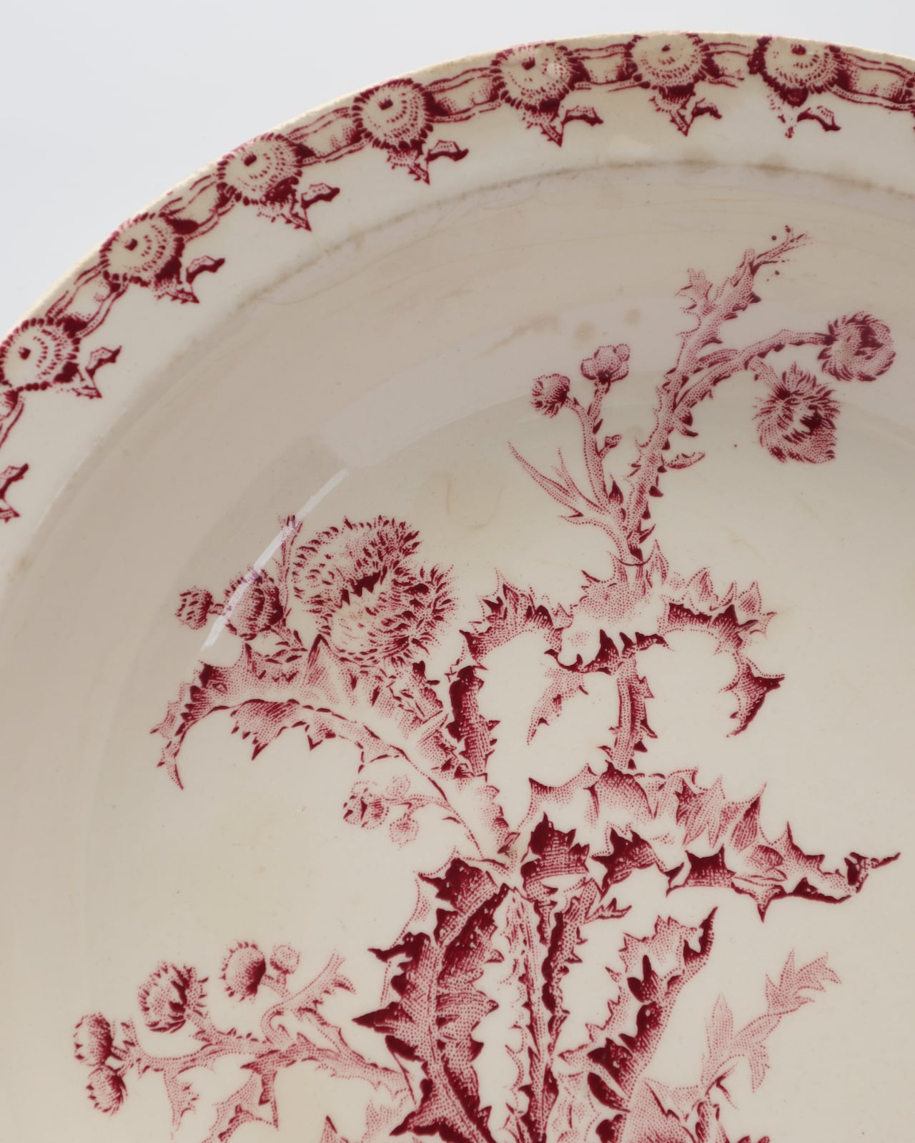 リズミカルにぐるりと淵に描かれるアザミが艶やかも演出しています。