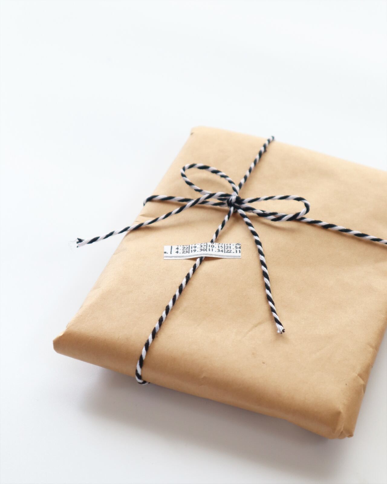 ・クラフト包装紙で丁寧にお包みし、ナチュラルなコットンリボンを結びます。