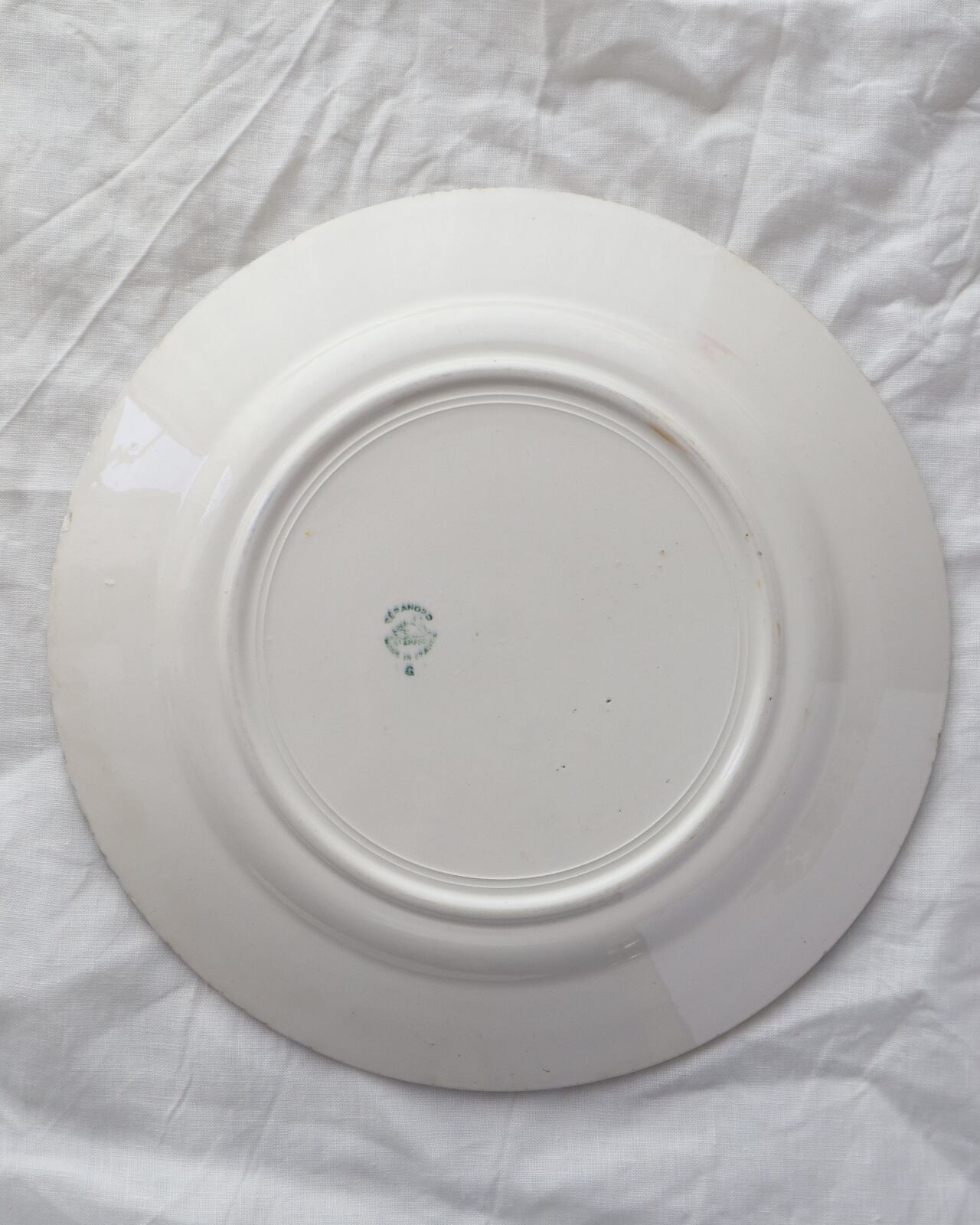 condition: 表面に製造の過程でできたと思われる突起とシミがあります。側面にカケがあります。カトラリー跡がありますが、全体的に綺麗な状態です。お写真でご確認ください。