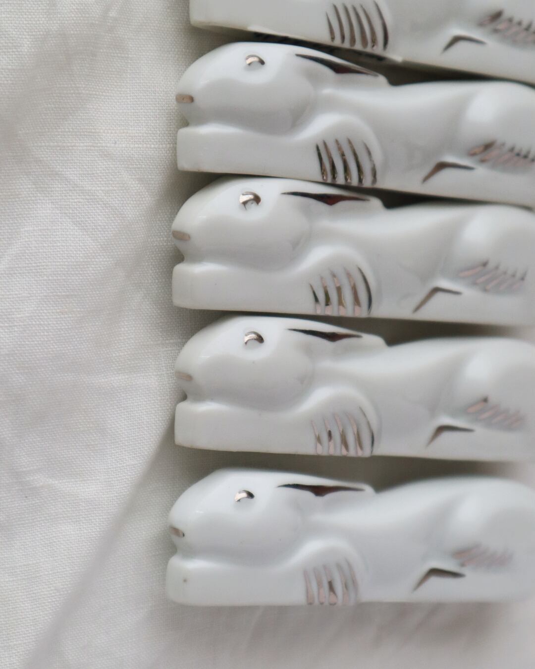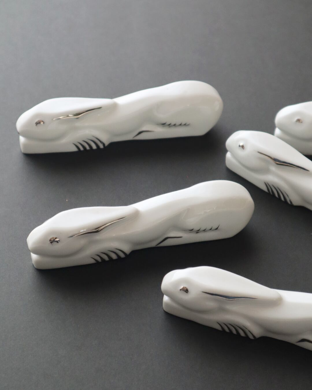カトラリーを支えてくれるのは、真っ白なうさぎ。