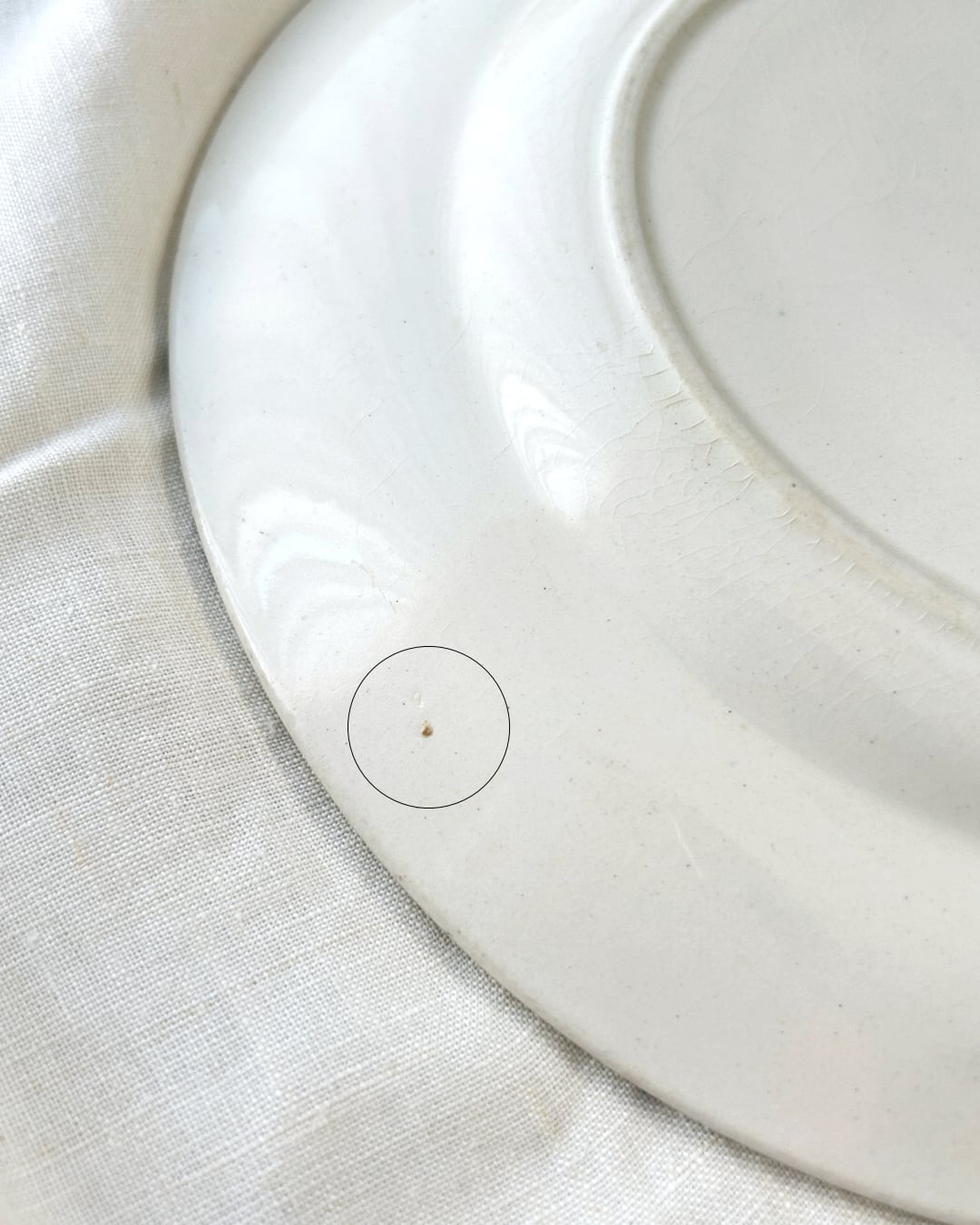 condition: 裏面に製造過程でできた汚れと突起があります。表面には貫入とカトラリー跡が見受けられますが、全体的にとても良い状態です。