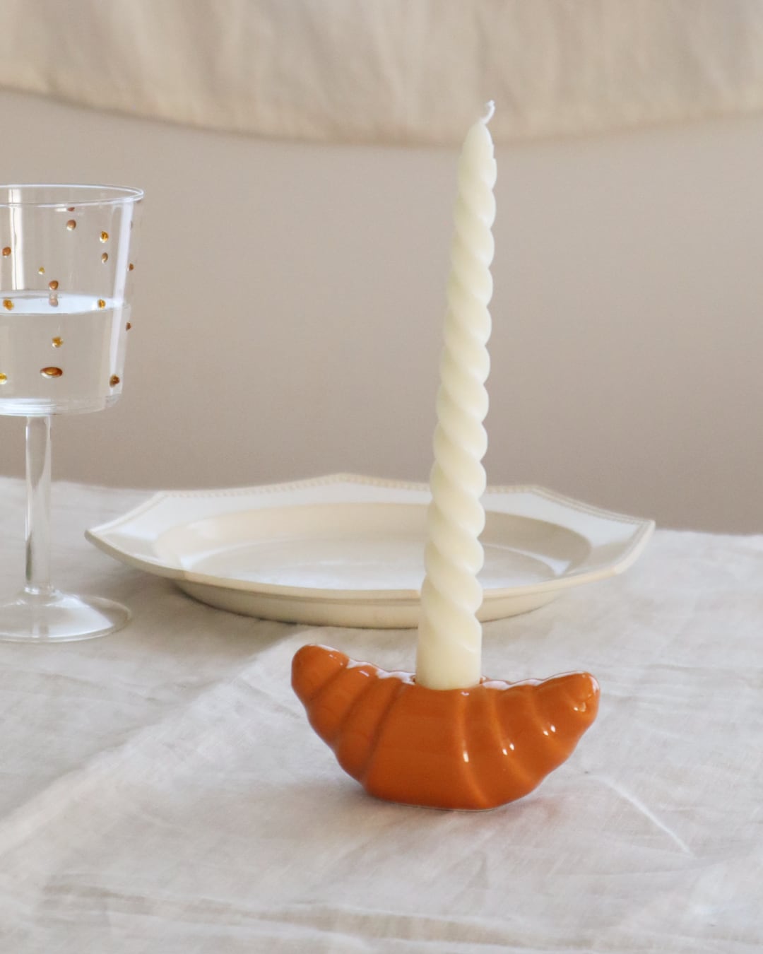 フランスの Fluid Market(フルイドマーケット) から届いた、思わず顔がほころぶクロワッサンモチーフのキャンドルホルダー。