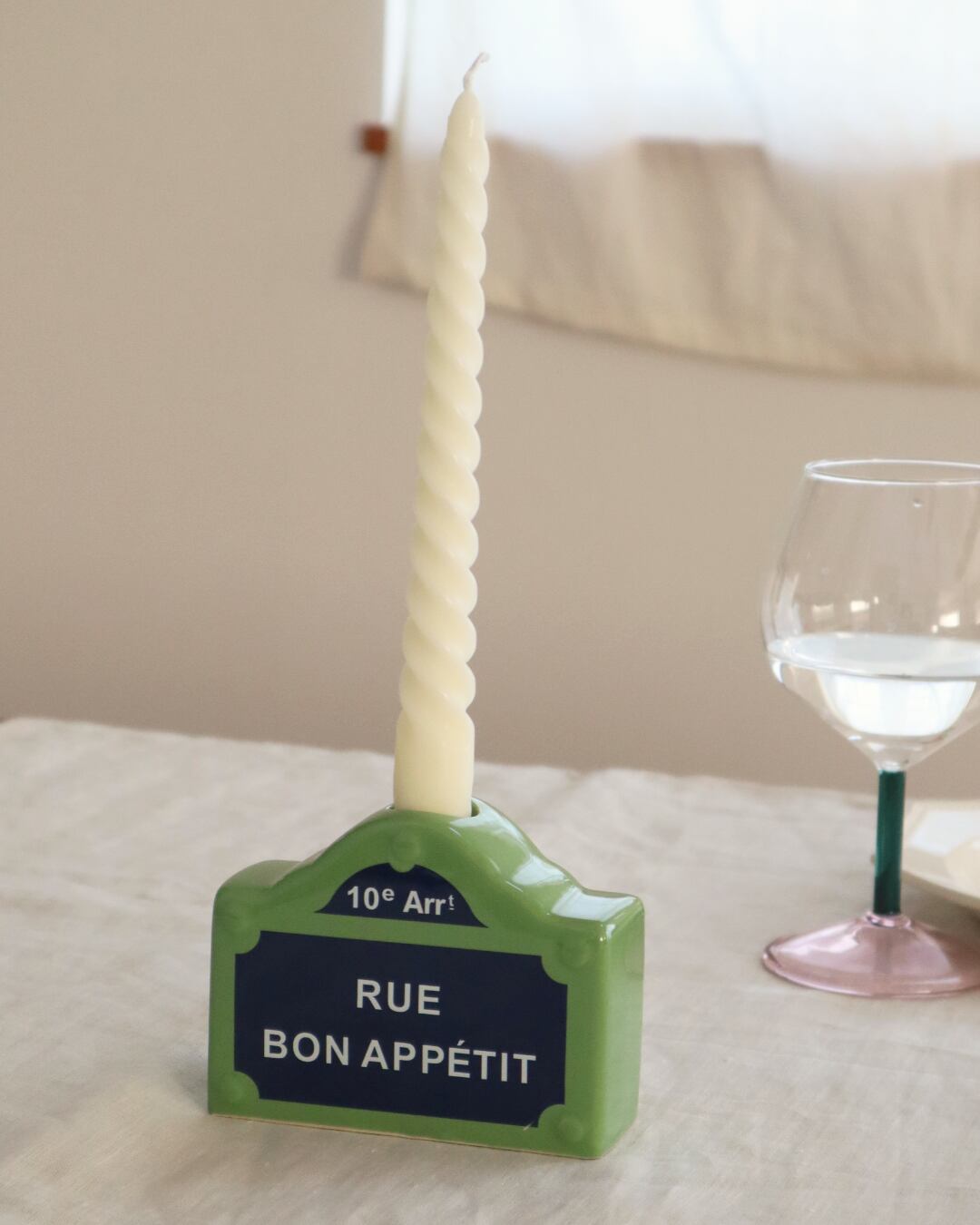 フランスを旅したことがある人なら一度は目にしたことがある、あのアイコニックな「通りの看板」が、小さなキャンドルホルダーになりました。