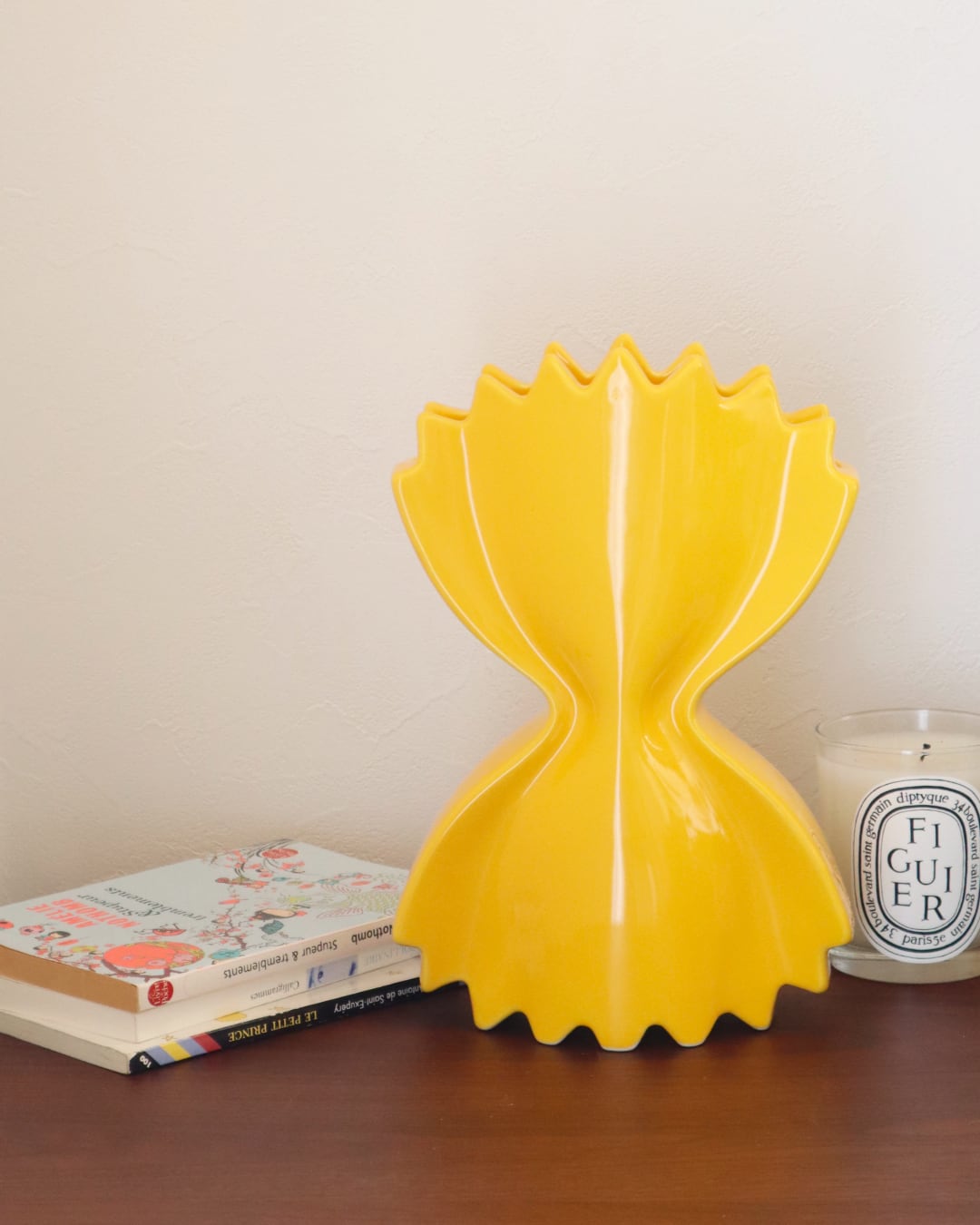 鮮やかなイエローの色彩と、陶器ならではの艶やかな質感が相まって、お部屋のどこに置いてもパッと目を引く主役になってくれます。