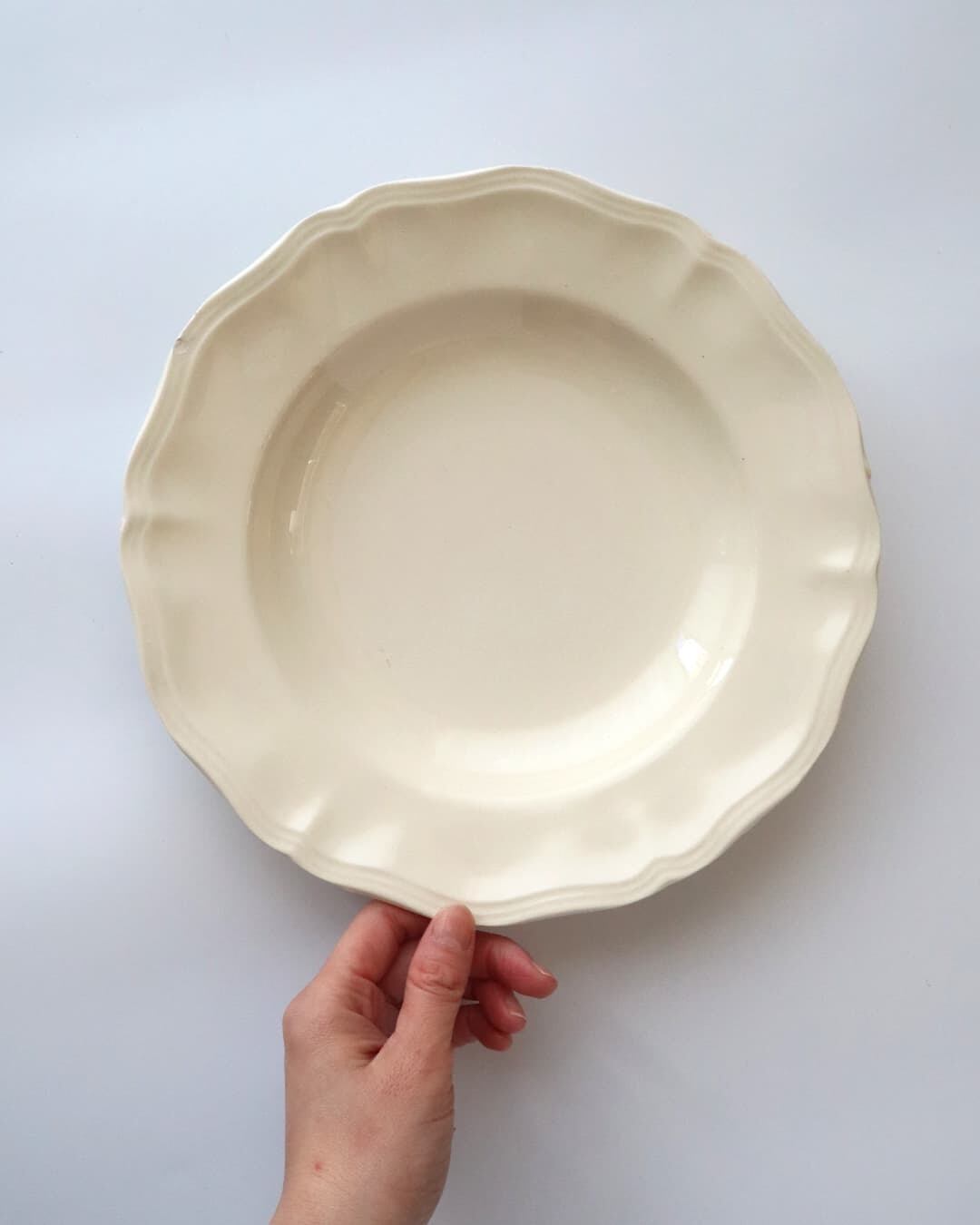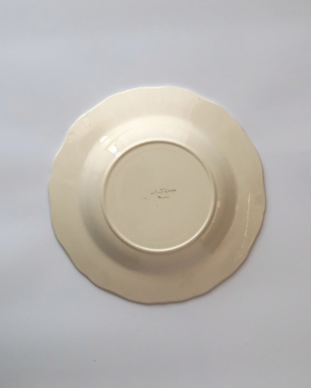 フランス サルグミンヌ窯より花リムの深皿プレート。