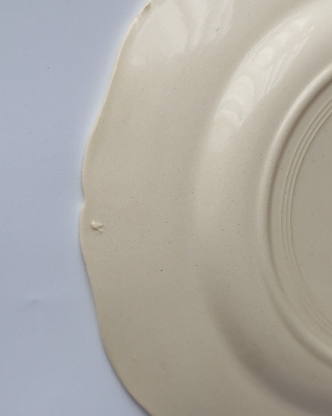 condition: 表面と裏面に製造過程の少し盛り上がった揺らぎがあります。表には青点があります。カケと少しの汚れがあります。側面に揺らぎがあります。