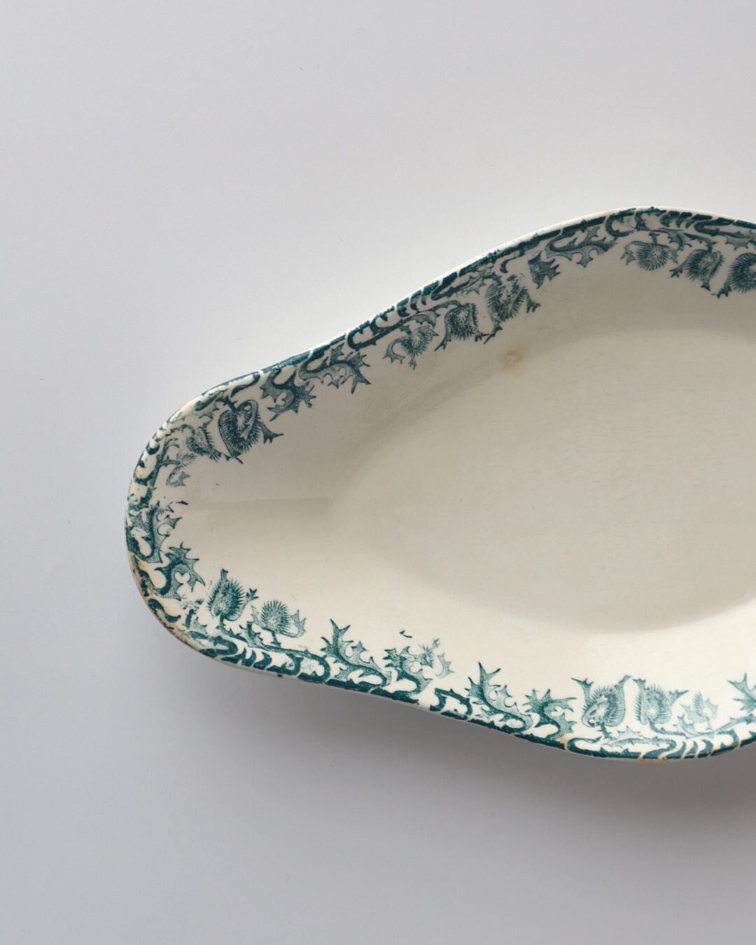 繊細なアザミの模様が、趣深いブルーグリーンで描かれています。