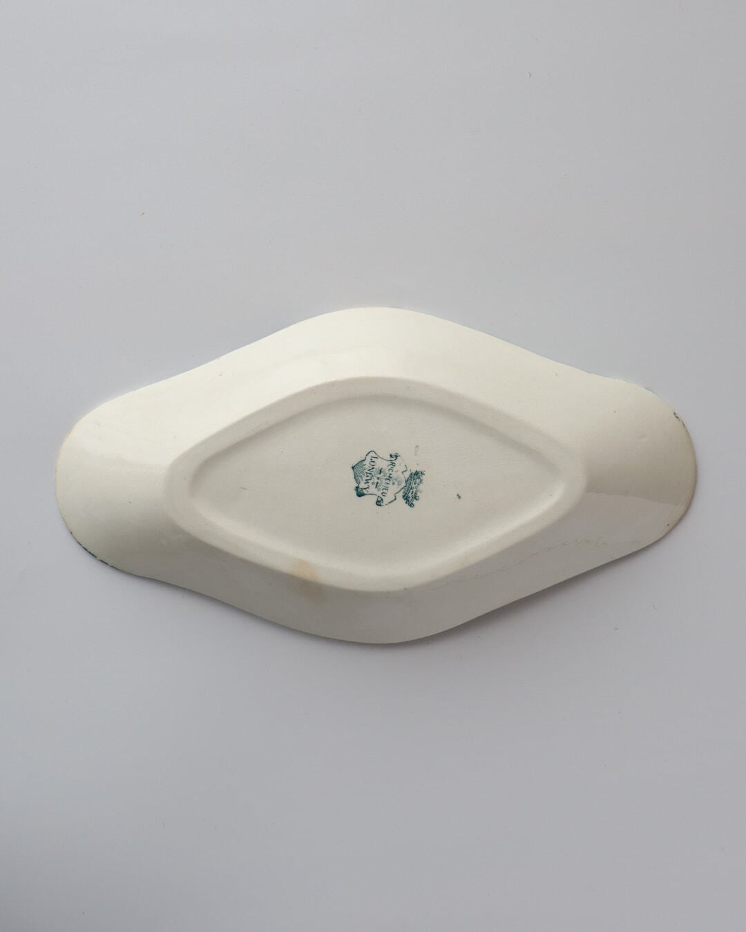 condition: 全体的に艶があります。表面に周りが変色しているカケが2箇所あります。貫入とカトラリー跡が見られます。ところどころ茶色く変色しています。裏面に製造過程の突起が2箇所あります。